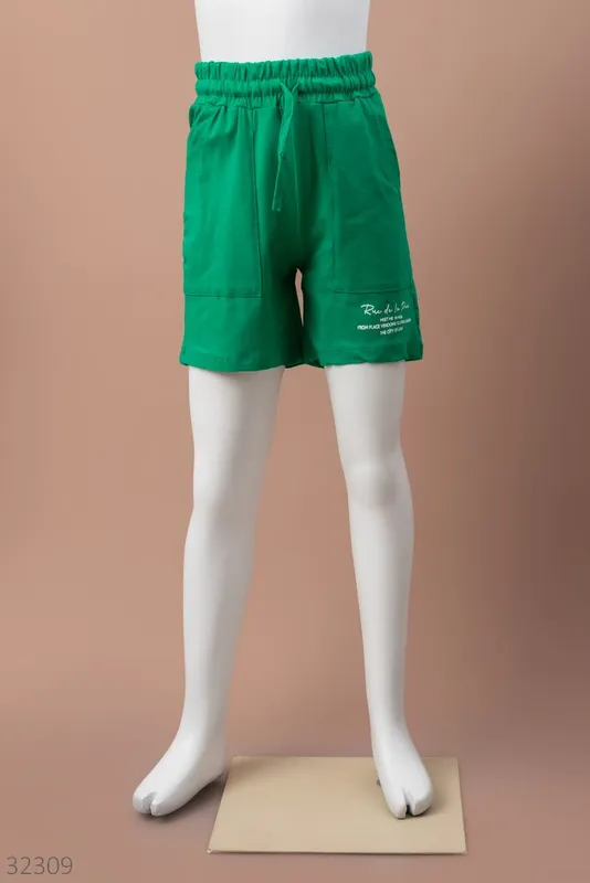 Цвет: зеленый Материал: коттон Страна производитель: Китай Сезон: лето Пояс резинка Размерная сетка: 9-12 лет Замеры: 8-9 лет - ПО талии 27 см, ПО бедер 36 см, посадка 24 см, шаговый шов 9 см, длина 33 см. 9-10 лет - ПО талии 27 см, ПО бедер 36 см, посадка 26 см, шаговый шов 9 см, длина 34 см. 10-11 лет - ПО талии 28 см, ПО бедер 39 см, посадка 27 см, шаговый шов 11 см, длина 35 см. 11-12 лет - ПО талии 28 см, ПО бедер 40 см, посадка 27 см, шаговый шов 11 см, длина 34 см.