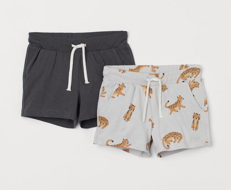 Набор детских трикотажных шорт (2 шт) для девочки. Шорты из мягкого хлопкового трикотажа с закрытой резинкой и шнурком на талии и боковыми карманами. H&M Цена указана за набор р.104 - 3-4 года: длина 23, ПОТ 24