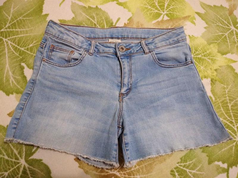 Стрейчеві джинсові шорти з малюнком на дівчинку 12-14 років