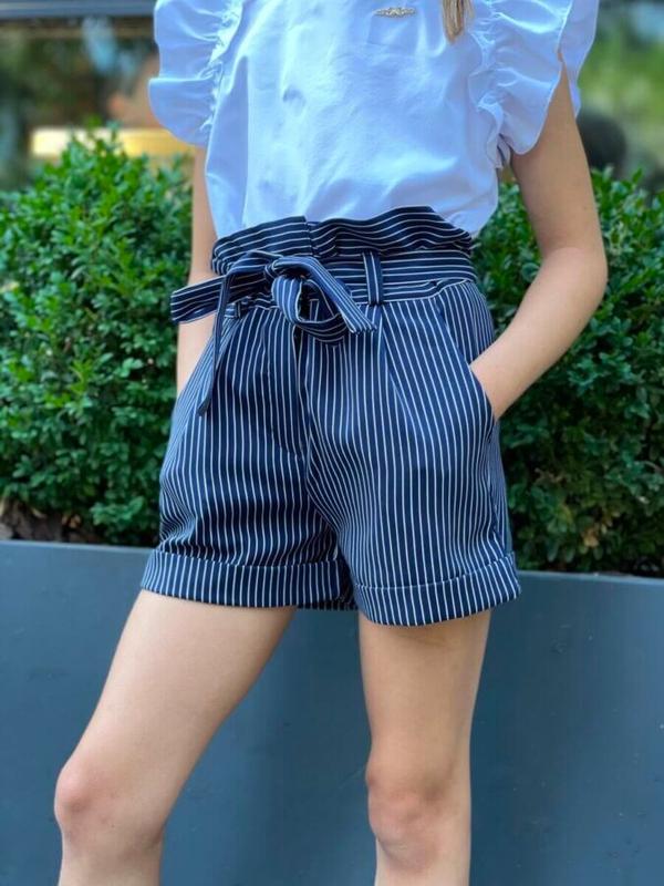 Шорты с завышенной талией! Пояс на пуговицах и молнии. В поясе вшита дополнительно резинка- что очень удобно! Пояс- сьемный! Замеры: 140 - длина 34 / полуобхват 38