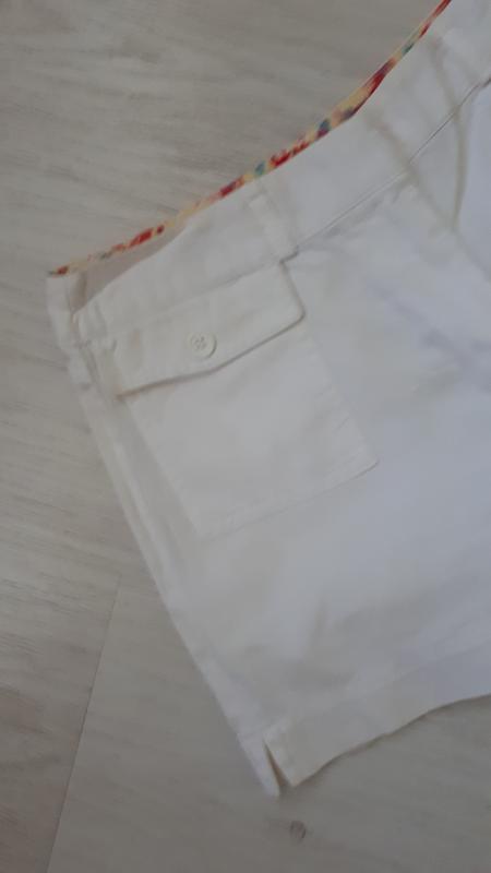 Шорти,колір білий. Виглядають симпатично. Приємна тканина, 100% котон. Вказано р.14 років. Зроблено Турція. Пояс 36см, бедра 47см,бок.шов 31см,шири на штани ни 30см. Відсилаю УП, НП