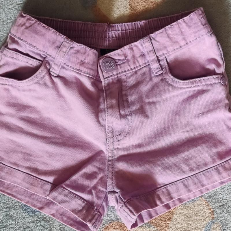 Дуже стильні джинсові шорти для дівчинки рожево-фіолетові з модною варкою. На 4-5 років, пояс регулюється резинкою, яка фіксується на ґудзики. В ідеальному стані.