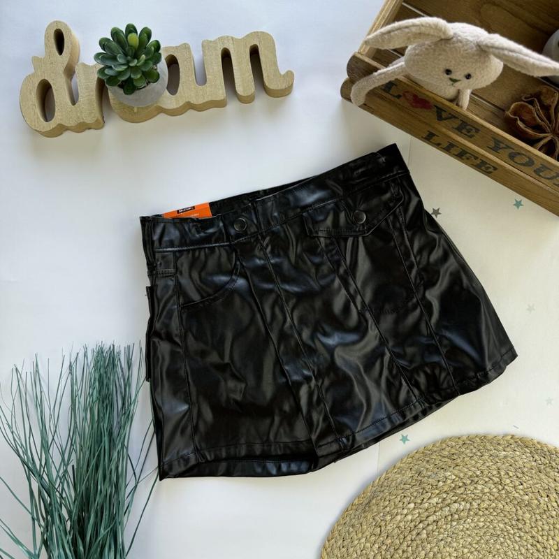 Стильные шорты – юбка из экокожи – отличного качества! Обязательный предмет в гардеробе настоящей модницы! Размеры: 9 (134) - длина 27/ полуобхват талии 31 10 (140) – 28/ 29 11 (146) – 28,5/ 31,5 12 (152) – 30,5/ 32
