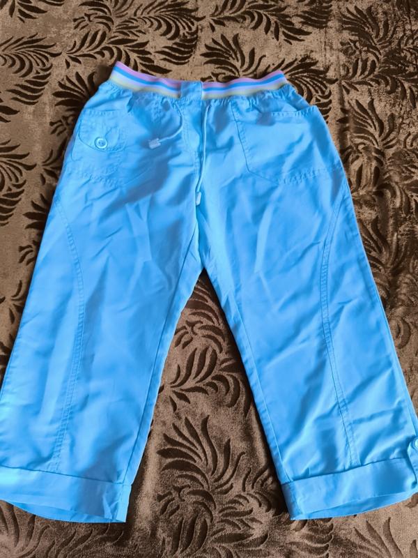 Красивые шорты капри голубого цвета, легкие, как раз на лето. Длина 65, талия 58 -72, бедра 88. В идеальном состоянии