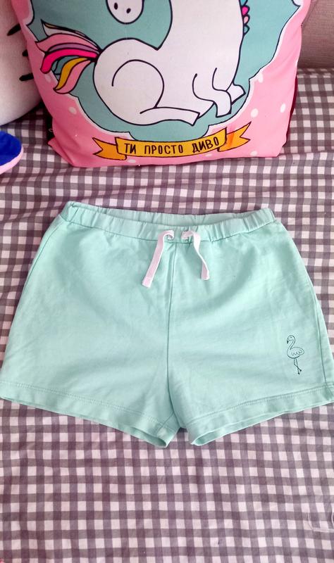 Шорти George мятного цвета из хлопкового трикотажа. Р. 122-128 (на 7-8роков) Принт: фламинго Пояс на резинке. Состав: 100% хлопок. Цена 65грн. Открытка Укр-почтой и Новой почтой.