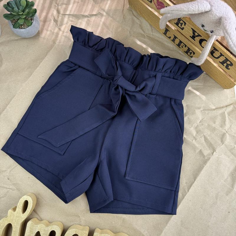 Удобные и стильные шорты синего цвета – производство Турция! Отличного качества! Обязательный предмет в гардеробе настоящей модницы! Пояс присборен на резинке. Дополнительно декоративный пояс. Ткань - мадонная (качественная ткань для пошива школьной одежды). Наклядные карманы. Размеры: 134 – длина 33/ полуобхват 28 140 – 34/29 146 – 35/30 152 – 37/31 158 – 38/33 164 – 40/33