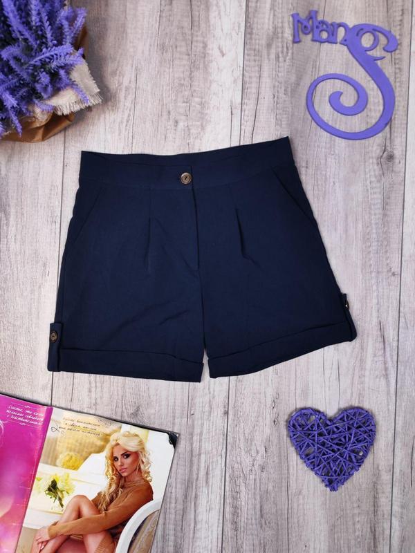 Новые синие шорты для девочки. С отворотом, два боковых кармана. Застёжка молния и пуговица. Состояние новое Размер 146 (11 лет) Цвет синий Замеры: Полуобхват талии 35 см Полуобхват бёдер 43 см Длина 33 см Длина по шаговому шву 11 см Передняя посадка 24 см Задняя посадка 29 см