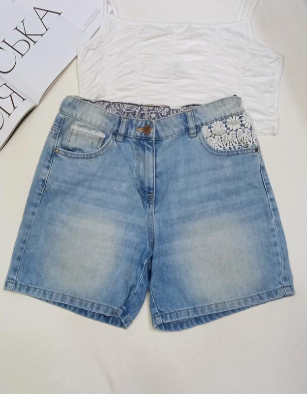 Стильные удлиненные детские шорты для девочки. По бирочке на 12/166, но ориентируйтесь на замеры. На талии резинка регулируется, на карманах кружево. Замеры: • НО стегон – 44см. • Длина - 35см.