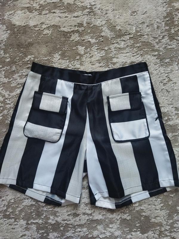 Новые, без бирки, покупала зимой, летом донцы уже стали маленькими) не успела поносить. Оригинальная модель, спереди накладные карманы, полоски:белая, черная золотистая, сбоку на молнии