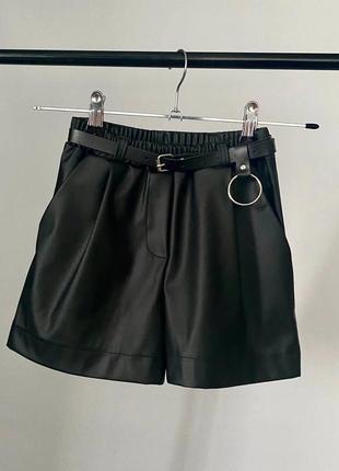 КОЖЕННЫЕ ШОРТЫ ТКАНИНА: Шорты: матовая эко-кожа на трикотаже в поясе резинка Пояс входить до комплекту! ВЫМЕРЫ: р.128 длж шорт/бедра/талия 29/38/26см р.134 длин шорт/бедра/талия 30/40/26см р.140 длин шорт/бедра/талия 32/42/27см р.146 длж шорт/бедра/талия 33/43/28см р.152 длин шорт/бедра/талия 35/46/29см р.158 длин шорт/бедра/талия 36/49/30см