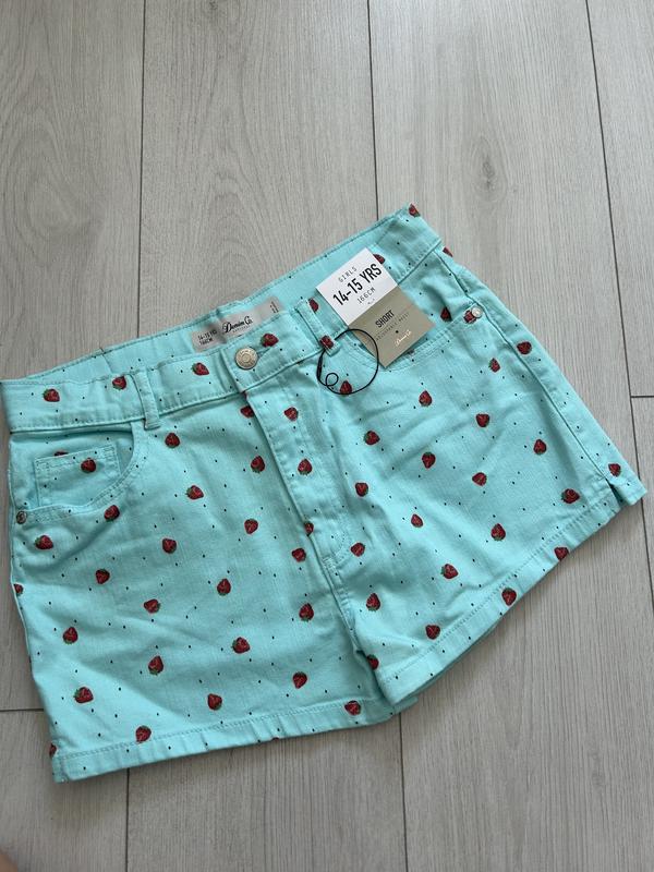 Красивые шорты с принтом клубнички Размер по набору 14-15 р, 166 см Замеры на фото