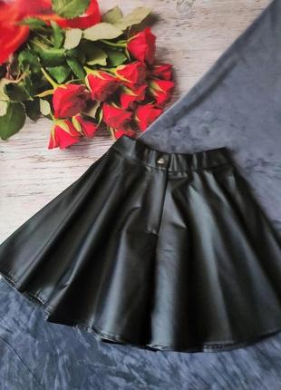 В наявності! Стильні спідниця-шорти Пояс по спинці на резиночці. Тканина еко-шкіра. Колір - чорний. Заміри: 140 довжина - 33см, пояс - 29см. 146 довжина - 35см, пояс - 30см. 152 довжина - 37см, пояс - 31см. 158 довжина - 39см, пояс - 32см. 164 довжина - 41см, пояс - 32см.