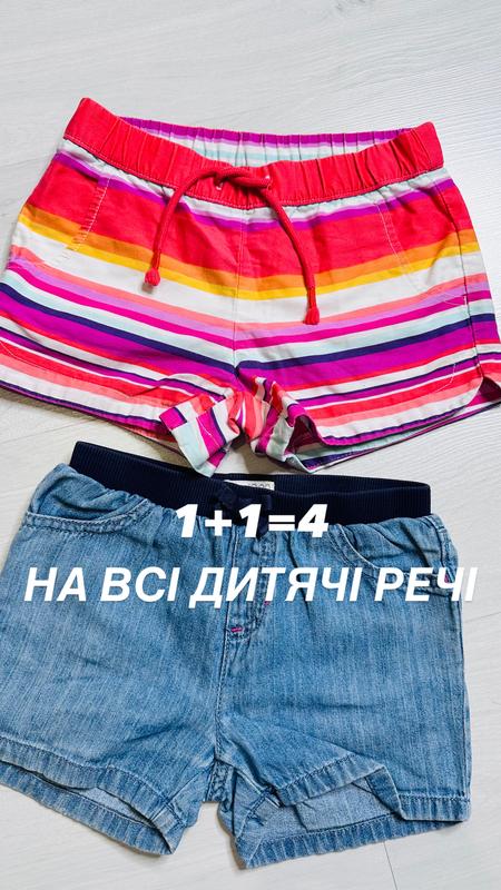 Полосаті шорти: Пів.обхват талії - 27 см Довжина по боковому шву - 20,5 см Джинсові шорти: Довжина по боковому шву - 23 см Пів.обхват талії- 24,5 см(мʼяка резинка) Зі зручними карманами Відправка 2-3 рази на тиждень