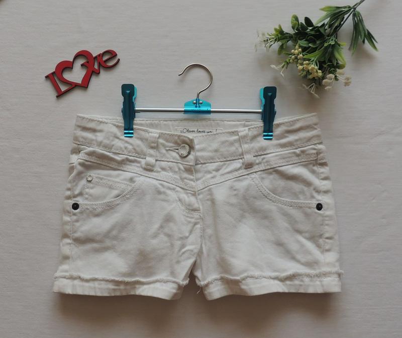 шорты белые Оливер в хорошем состоянии 32 до 35 есть утягивающая резинка в бедрах довольно тугие потянутся до 44 подворот пришит очень стильные чуточку стерлась кроска на кнопках загалом прекрасно
