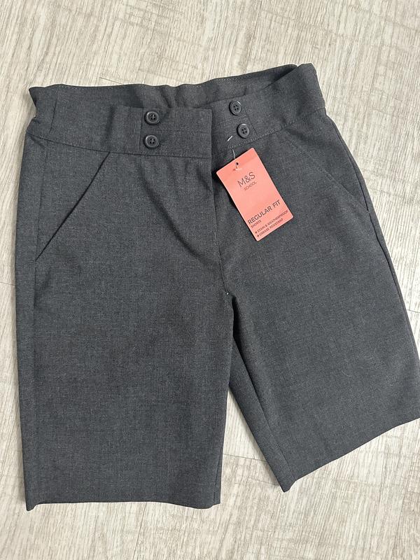 Новые очень крутые шорты для школы Marks & Spenser для девочки. Размер на 9-10 лет. Очень красивый фасон, красиво держит форму. Тканина брючна. Есть боковые карманы и пояс можно регулировать с помощью резинки. Стильные шортики очень высокого качества известной фирмы. Идеальны для школы в любое время года!!) Открытка Новой почтой или Укр-почтой в течение 1-2 дней. Приятных покупок!)