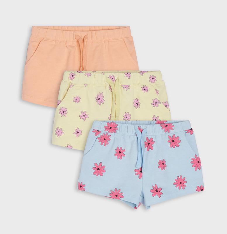 Набор детских шорт для девочки. Шорты из плотного хлопка (петелька) с закрытой резинкой и шнурком на талии и карманами по бокам. Sinsay 60% БАВОВНА, 40% ПОЛІЕСТЕР Цена за набор (3шт.) р.104 - 3-4 года: длина 17, ширина талии (ПОТ) 24 р.116 - 5-6 лет: длина 18, ширина талии (ПОТ) 26