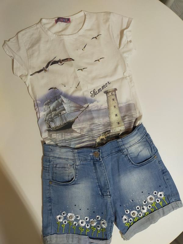 Шорты джинсовые и футболка на 11-12 лет Возможна продажа вещей по отдельности