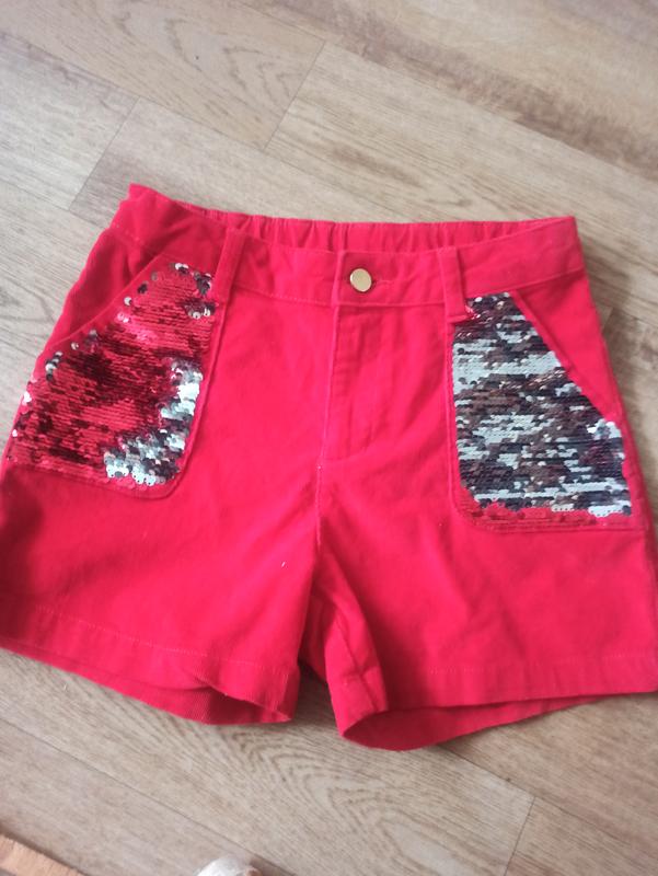 Шорты на девочку красные вельветовые в идеальном состоянии. Тм LC WAIKIKI. Размер 140-146. Милый рубчик. Спереди карманы. На карманах двусторонние пайетки красно/белые. На поясе есть утяжки, резинка. Замеры Пояс- 30 Длина 29 Ширина галоши снизу 23 Глубина 29