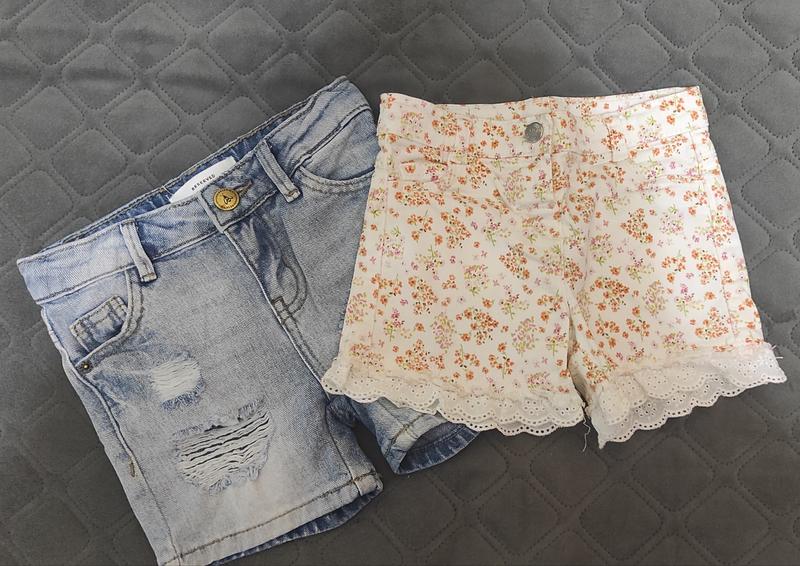 Стильные джинсовые шорты для девочки. Синие шорты - бред Reserved, размер 110, отлично подойдут на 3-4 года. Светлые в цветочек - lc Waikiki, размер 98 см, полномерный, красиво будут на 2,5-3 года. Стан идеален. 120 грн за 1 шт. Если брать сразу двое, цена будет 200 грн.