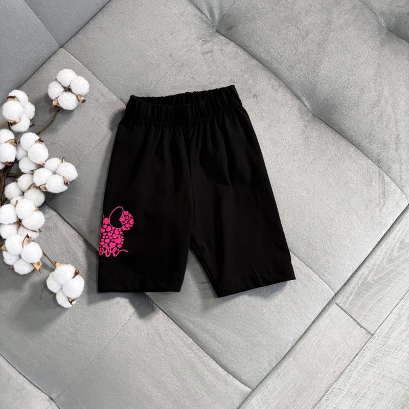 💕Треси Love , чорні. Тканина турецький трикотаж 95% бавовна, 5% еластан. Гарно тягнеться. Малюнок - накат 📐Заміри: (98-104) - довж 28 (104-110) - довж 30 (110-116) - довж 33 (116-122) - довж 36
