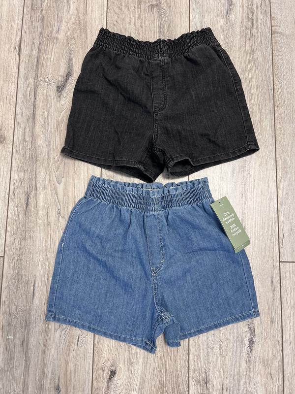 Шорти hm 7-8 років, голубі нові, з етикеткою, тканина тоненький джинс, на резинці, тягнуться до 32 см, чорні одягли декілька разів віддам за 100 грн, чорні трикотажні 128р тягнуться теж до 32 см, нові, мають кармани 100 грн.