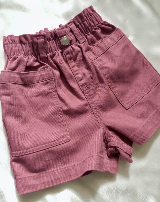 Шорти на високий посадці з накладними кишенями , пояс гумка , зі 100% бавовни , в ідеальному стані, без дефектів. Тканина середньої щільності, не ,, дубова,,. Довжина 29 см, Нот. 23 см і тягнеться, Нос. 37 см.
