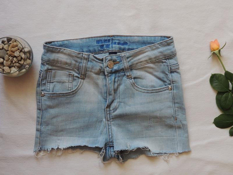 Голубые шорты скорее всего хендмейд размер xxs талия 29/35 бежевое тянутся до 42 см гонять во дворе подойдут девочке 10 11 12 лет