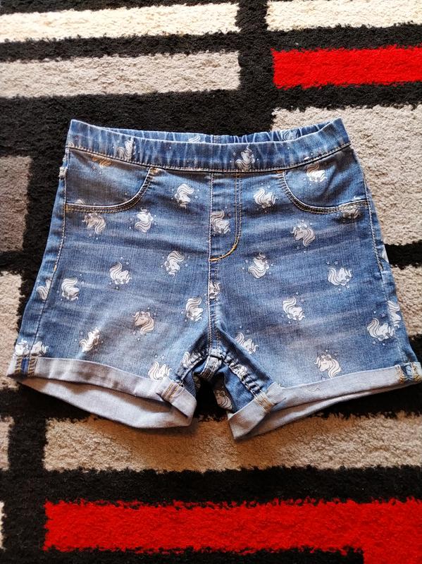 Джинсовые шорты с единорожками для девочки 7-8 р