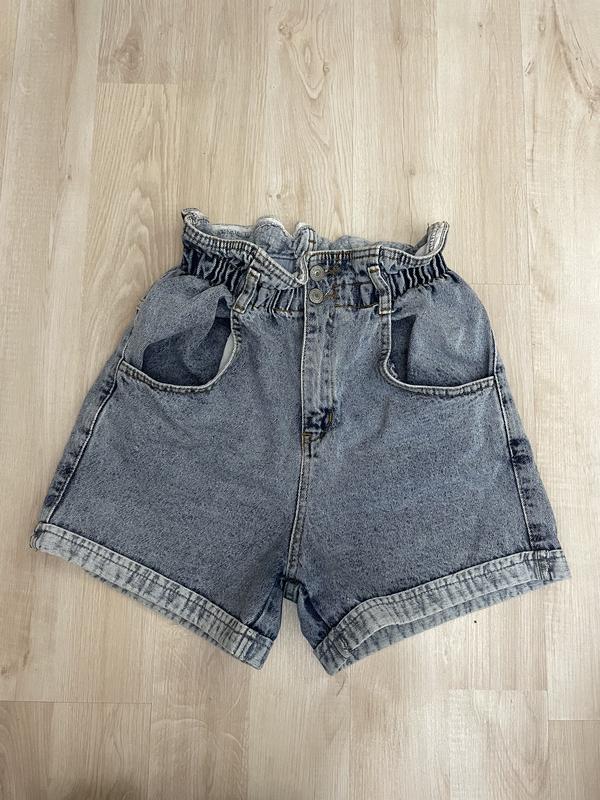Жіночі джинсові шорти на високій посадці з резинкою на талії Розмір S Колір синий Пів обхват талії від 30 до 36см Пів обхват стегон 46 см Довжина вибору 43см