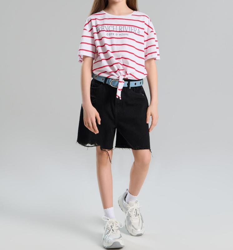 Фирменные джинсовые шорты на подростка. Высокая посадка, два кармана спереди и два сзади. Материал: 100% хлопок. Цвета: серый, черный, голубой. Размеры: 140-164 (уточняете)