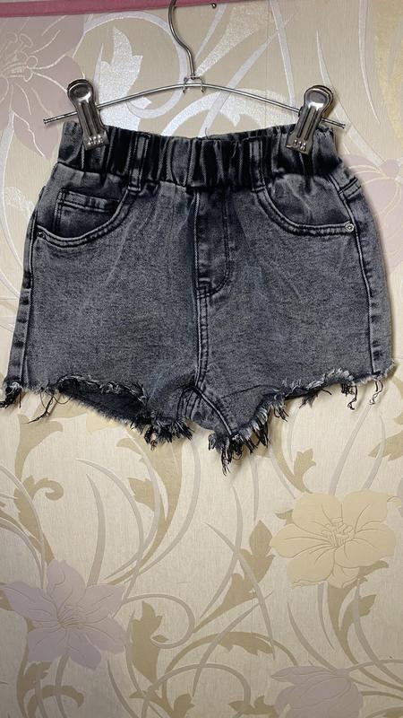 Шорти чорні з потертостями на 8-9 років. Розмір 23. Талія 26 см, 28 см посадка до талії, бедра 38 см.