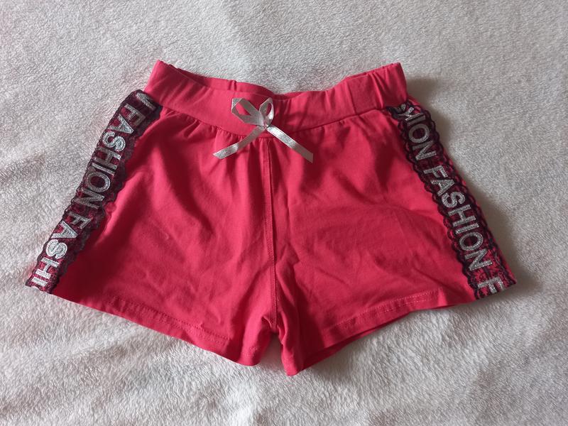 Яркие коттоновые шорты, украшенные аппликацией. Состояние новой вещи! Длина-28см, пояс-30 (мягко тянется до 38см), ширина в бедрах-45.