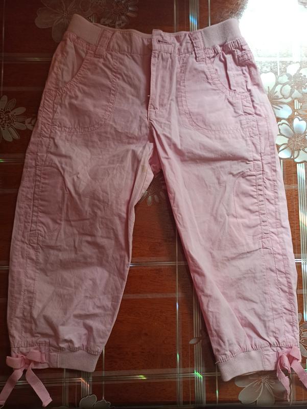 Тонкие хлопковые шорты для девочки. На манжетах штанин бантики. Есть нюанс - фото, возможно отстирается, не пробовала.