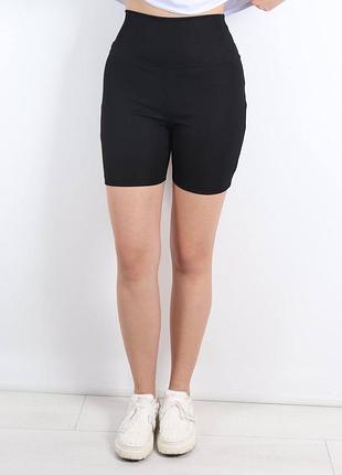 Шорти велосипедки укорочені чорні в рубчик, висока посадка