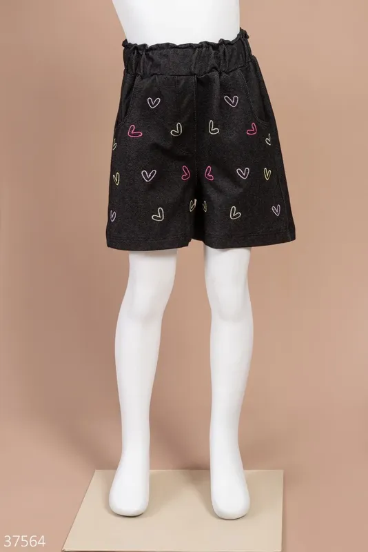 Шорты для девочек 51564 черные сердечки