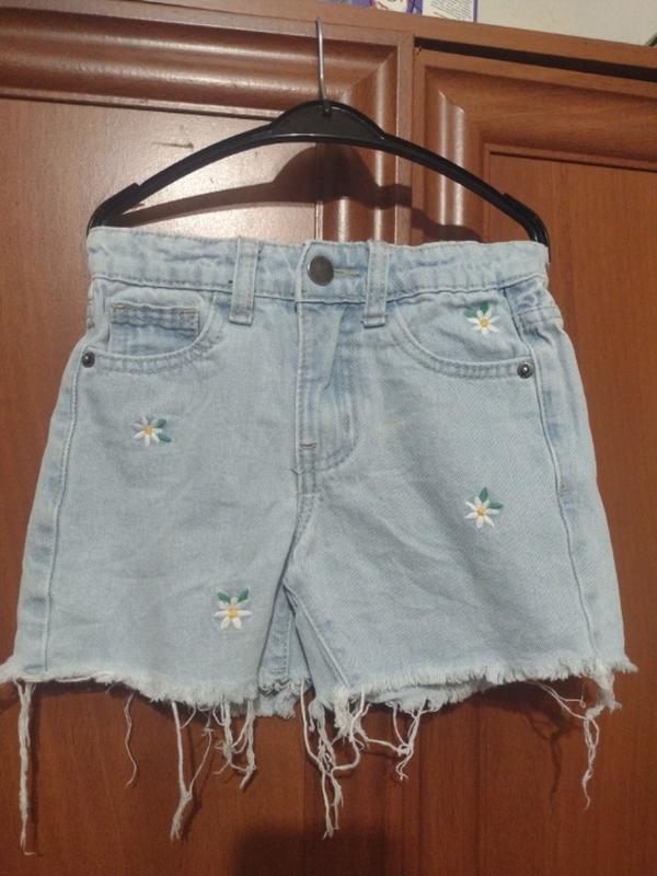 Шортики коттоновые на девчочке в принт вышитые ромашки.