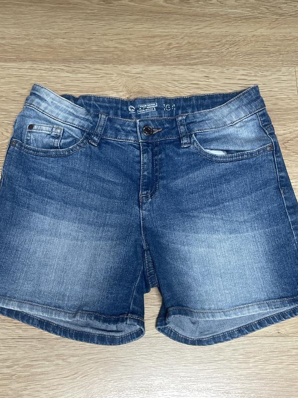 Джинсові шорти , трохи подовжені , проте не дуже довгі . Пояс трохи вужчий тому підійде для трішки худих дівчат