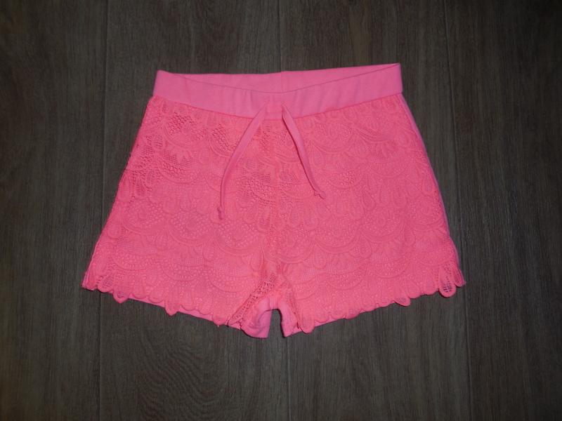 Шорты *Primark* котон- полиестер, впереди + кружево, 9-10 лет (140 см) как Новые, длина 26 см впереди, 25 см сзади, пояс 56 см - до 68 см тянется резиночка. 120 грн.