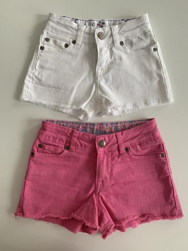 Однаковий розмір, але рожеві трішки більші (заміри на фото). Є ґудзики та резинки для коригування талії.
