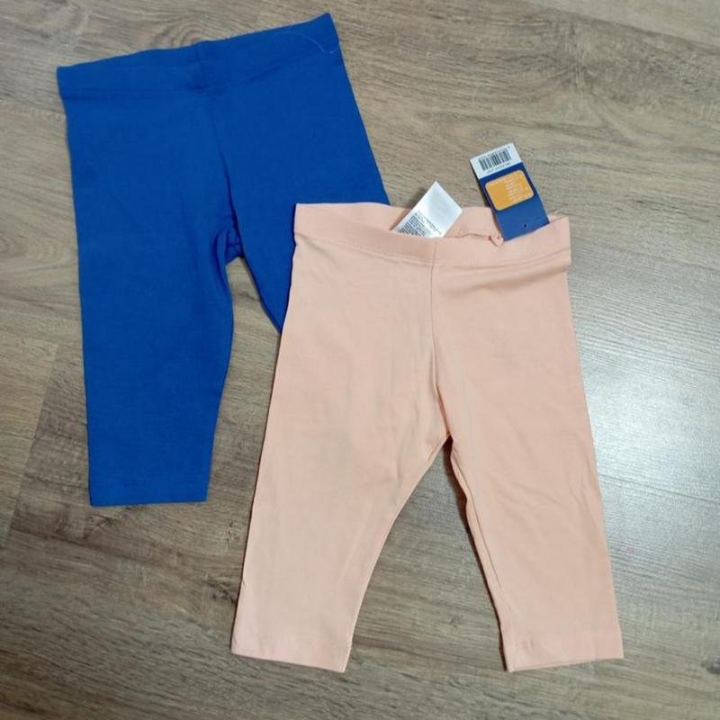 набор укороченных лосинок велосипедок на девочку от брендового производителя lupilu синего и персикового цвета размер 98 104 на 2-4 года