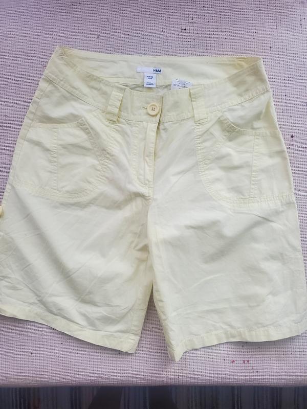 Летние шорты, нежного желтого цвета, Заміри. ПОТ 35см-42 резинка ПОБ 50см дліна 50см Посадка 28см. ширина низ. 23см.
