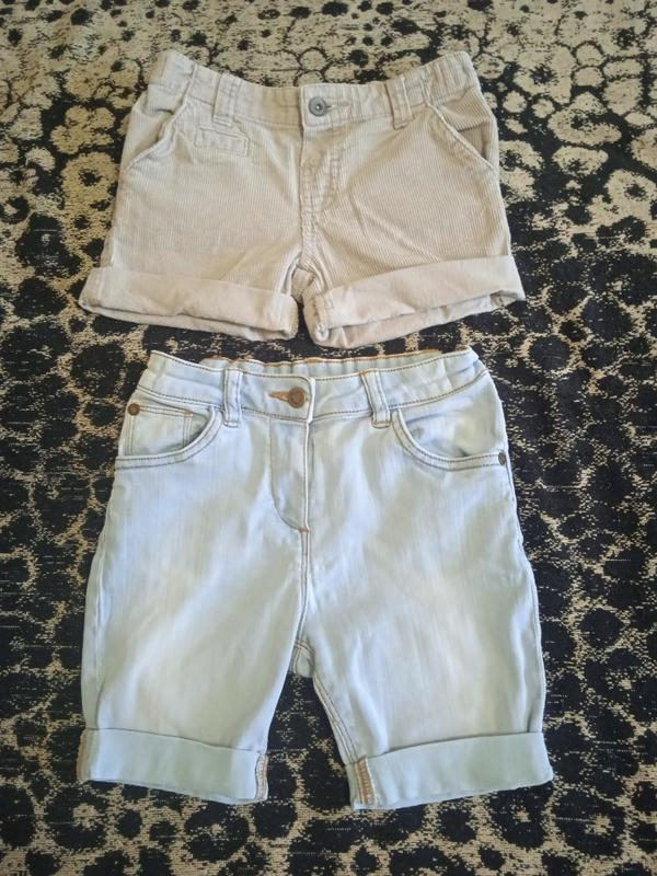 Шорты на девочку 5/6/7 лет, в идеальном состоянии, цена за 2 шт. вельв. длина - 21, пот - 27-31 джинс. длина - 30, пот - 25-33