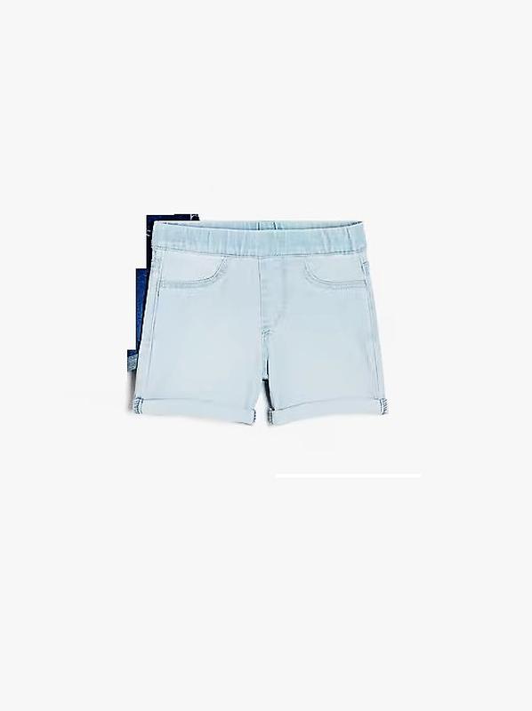62% бавовна, 35% поліестер, 3% еластан Легко одевающиеся шорты из стираного эластичного хлопкового денима. Эластичный пояс, ложная ширинка, ложные передние карманы и пришитые отвороты на манжетах. Полуобхват пояса 30см, полуобхват бедер 42см, длина изделия 30см.Без бумажной бирки.