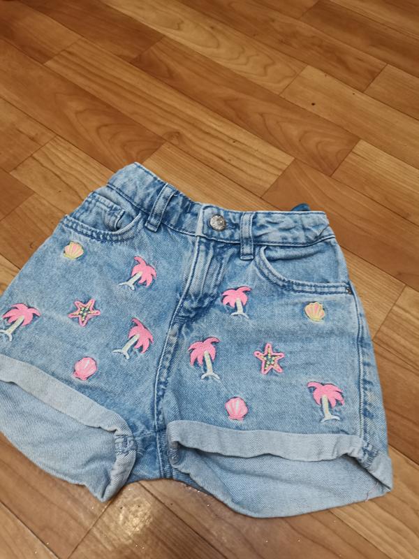 Джинсові шорти для дівчинки 6-7 років. З рожевими фламінго. заміри на фото.