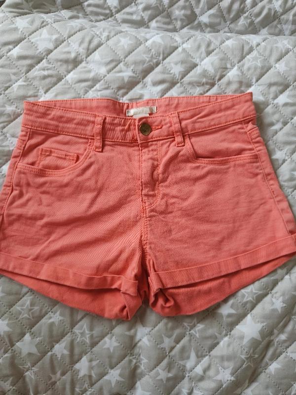 Шикарные, качественные, джинсовые шорты персикового цвета. Имеются по два кармана спереди и сзади. В идеальном состоянии. Замеры: Полуобхват талии - 34 см Высота пояса до паха - 29 см Ширина штанини - 25 см Бедра - 39 см