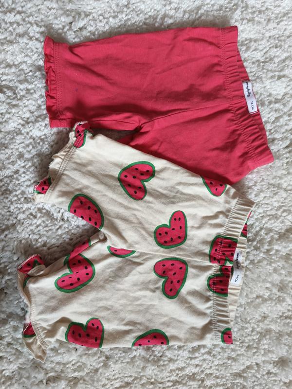 Детские шорты для девочки, 2 шт, 74 размера. Есть маленький дефект в виде маленькой пятнышки с правой стороны на розовых шортах. Фото добавила