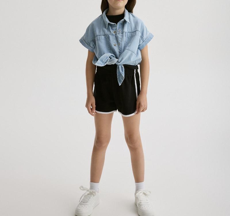Спортивні котонові 🩳 шорти для дівчинки 👧,талія на широкій резинці,можна на розмір с 🏷️талія-33см-37см 🏷️стегна-46см 🏷️довжина шортів-34см