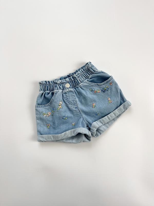 Дитячі джинсові шорти від британського бренду Next для малюків 1,5-2 роки. Особливості: • Розмір: 92 (1,5-2 роки) • Матеріал: 100% бавовна • Колір: блакитний • Декор: яскрава вишивка квітковими мотивами • Зручна гумка на поясі • Підвернуті манжети • Функціональні кишені • Стан: 9/10 - відмінний стан М'які та зручні шорти з натуральної бавовни забезпечують комфорт під час активних ігор. Квіткова вишивка додає святковості повсякденному образу.