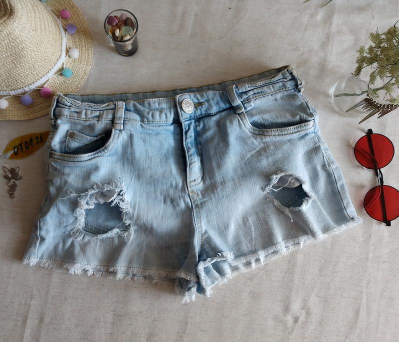 Шорты джинсовые светло-голубые рост 158 см, пот от 35 до 40 поб ориентировочно 46 53 боковой шов 24,5 органично рваные и очень классного качества и в классном состоянии без износа 🍀 отправка вещей от 100 грн 🪙🛍️📦