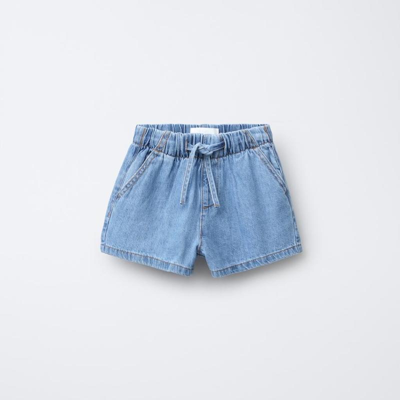 📌 156 12-13 років Довжина 29 напівобхват стегон 47 пояс 35-39 посадка 33 Джинсові шорти блакитного кольору на резинці зі шнурком для регулювання від бренду zara